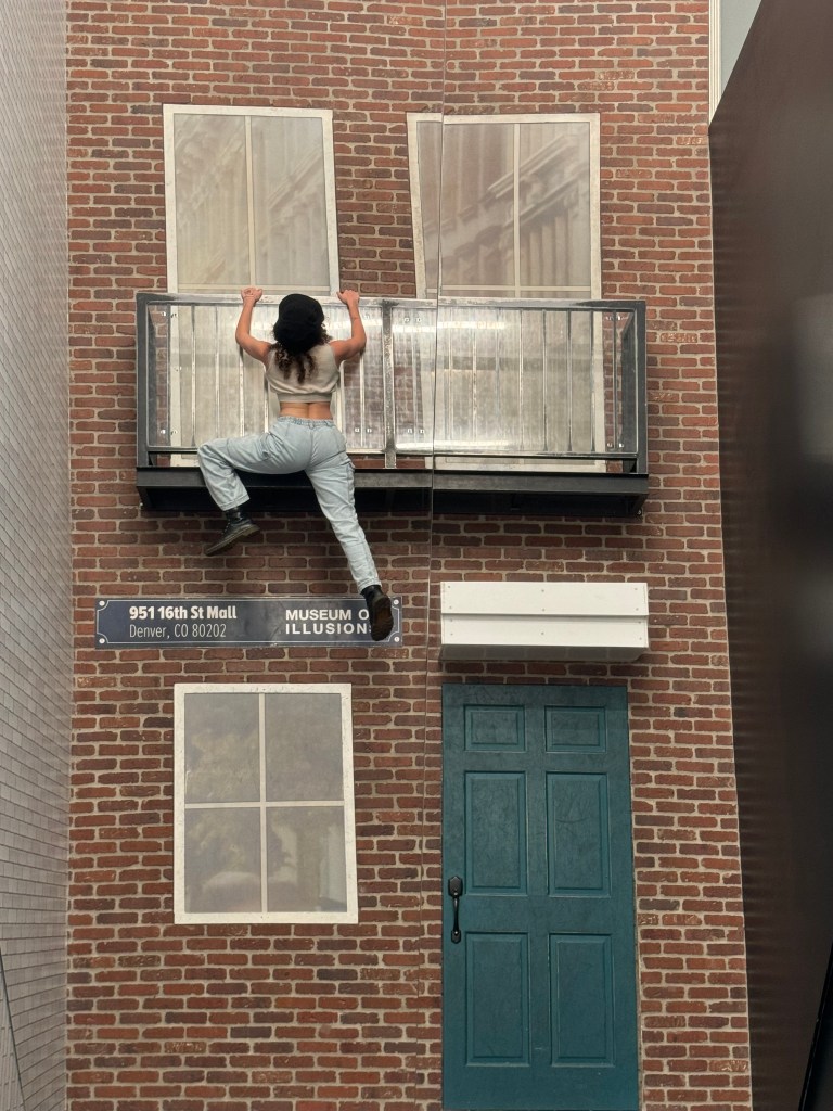 Day four we packed up everything and killed some time in Denver before heading to Colorado Springs. We headed to the Museum of Illusions which again caused for great photo opportunities. This museum used trick mirrors, strange angles, and other optical illusions to mess with your mind. One illusion I really enjoyed was this “moving bridge.” Basically this exhibit put you in a tube with a bridge inside of it. The bridge didn’t move and the room didn’t move. There was a screen that moved around the bridge making you feel like the bridge or exit was moving. When I let go of the hand rails I found myself crashing into the fence of the bridge. Another fun illusion they had was in the woman’s bathroom, it was simple but creative. There was a sign on the women’s bathroom saying woman, as is common. Once you entered there was a single stall and two sinks. There was then another door that said ‘women.’ When I opened the door it was a private bathroom within the bathroom. It was such a little thing but blew my mind.