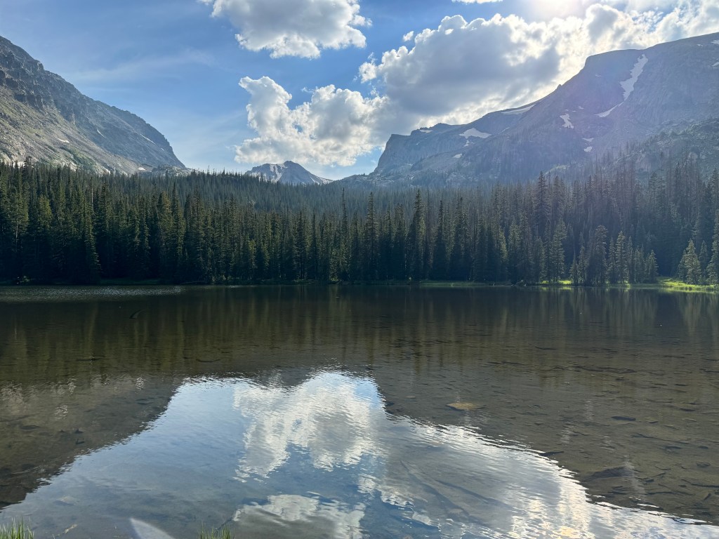 Our second day in Boulder brought us to Rocky Mountain National park. This trail was more forested and more beginner friendly. There were many families there with their kids to look at the waterfalls. We had our photo shoot when we reached the falls. After that, we decided to continue onto another trail. This trail added on an extra two miles to get to the lake. As we walked, we started hearing thunder. Nothing seemed to reach us yet though so we continued. We made it to the lake with a plan B to get to the rangers station if it started to rain or storm. The lake was so quiet and a wonderful place to reflect. After a while we heard no thunder and started walking back. As we retraced our steps back to the car, we noticed it had rained on the beginning parts of the trail. We were lucky enough to dodge it.