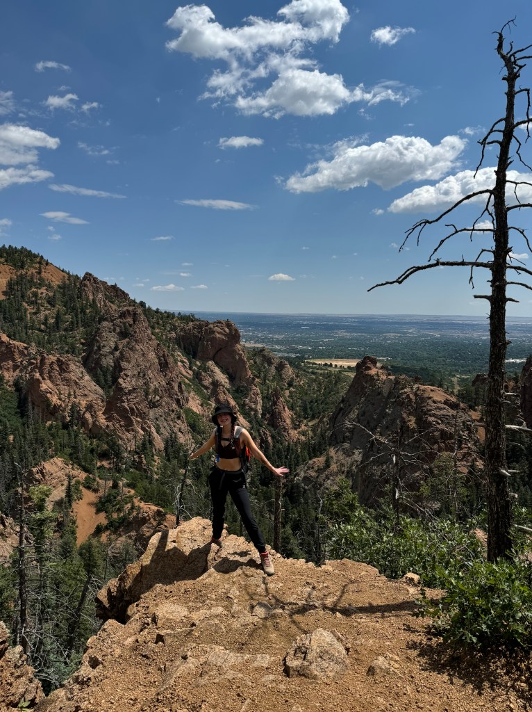 We are now on day seven which brought us 14,115ft high. It took a 30 minute drive for us to get to the entrance of the park. Then, we drove for another 30 minutes up the mountain to reach Devil’s Playground trailhead. The beginning of the hike consisted of some steep inclines and mountain goats! Eventually the trail ‘ended’ and the climbing section began. In front of us was a mountain of boulders to climb all the way to the top of the peak. I managed to make it to the top by climbing and using my newly brought oxygen can. Once at the top we went to the bathroom, brought some merch, and took some photos. We also got donuts which are suppose to taste different because of the altitude. It tasted normal to me. In the distance we spotted a storm forming earlier than expected. I am telling you that the weather app lied to us this entire trip. We decided that we have enough time to get to the bottom of the boulders and can hitch hike the way back to the car if needed. We were fooled again. We were maybe a quarter of the way down the climbing section. Suddenly, we heard a huge clap of thunder and saw a streak of lightning in the distance. If that wasn’t enough, it then started hailing down on us which hurt my poor little hands. We were both just trying to survive at this point. I was just sliding down rocks I felt nothing other than the adrenaline to survive. There was hail pounding against my head, back, and hands. We kept low on the trail to avoid getting struck by lightening and dying.