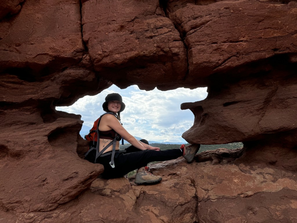 Our first hike was to the flat irons the next day and I immediately felt the change in altitude. I honestly wasn’t sure if I’d make it even to the start of this hike because breathing was so difficult. After many breaks, a snack, and some Gatorade, my body started to adjust. There were parts of this hike where we had to climb a flat rock. We had to find the hand holds and foot holds. I have never done anything like this in Jersey. The path to the flat irons just kept on going. Just when I thought we made it to the top there was another path to go down. This hike was extremely challenging. It was one of the first times I truly felt accomplished. Once we got to the top we started climbing some rocks and taking in views. This was also the only hike we’d go on with good weather on this trip. On our way down we met a nice man from Texas who also struggled with the altitude.